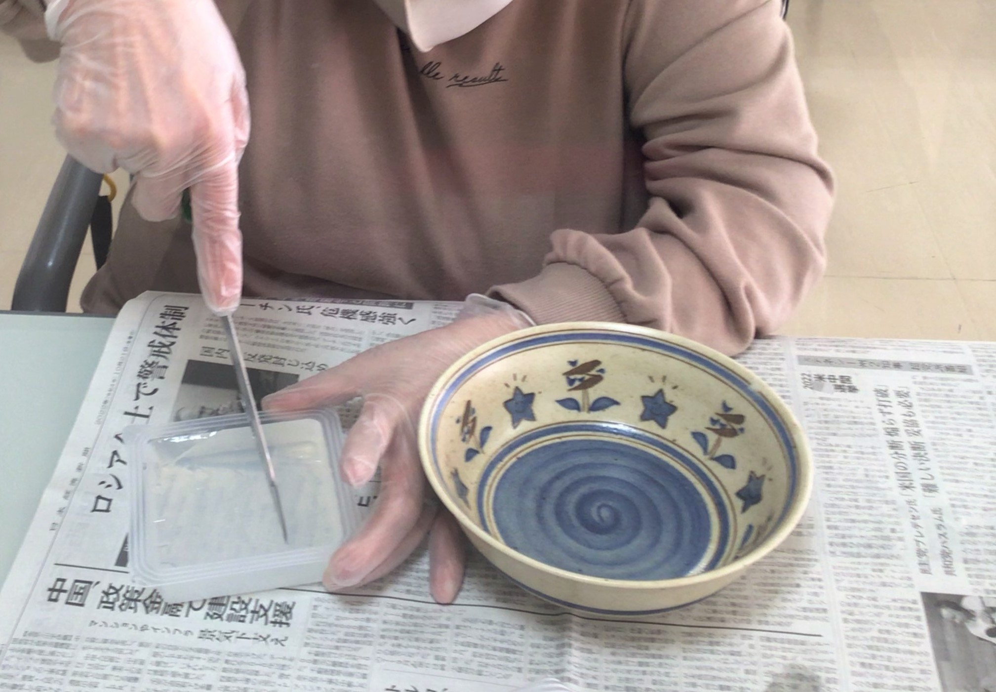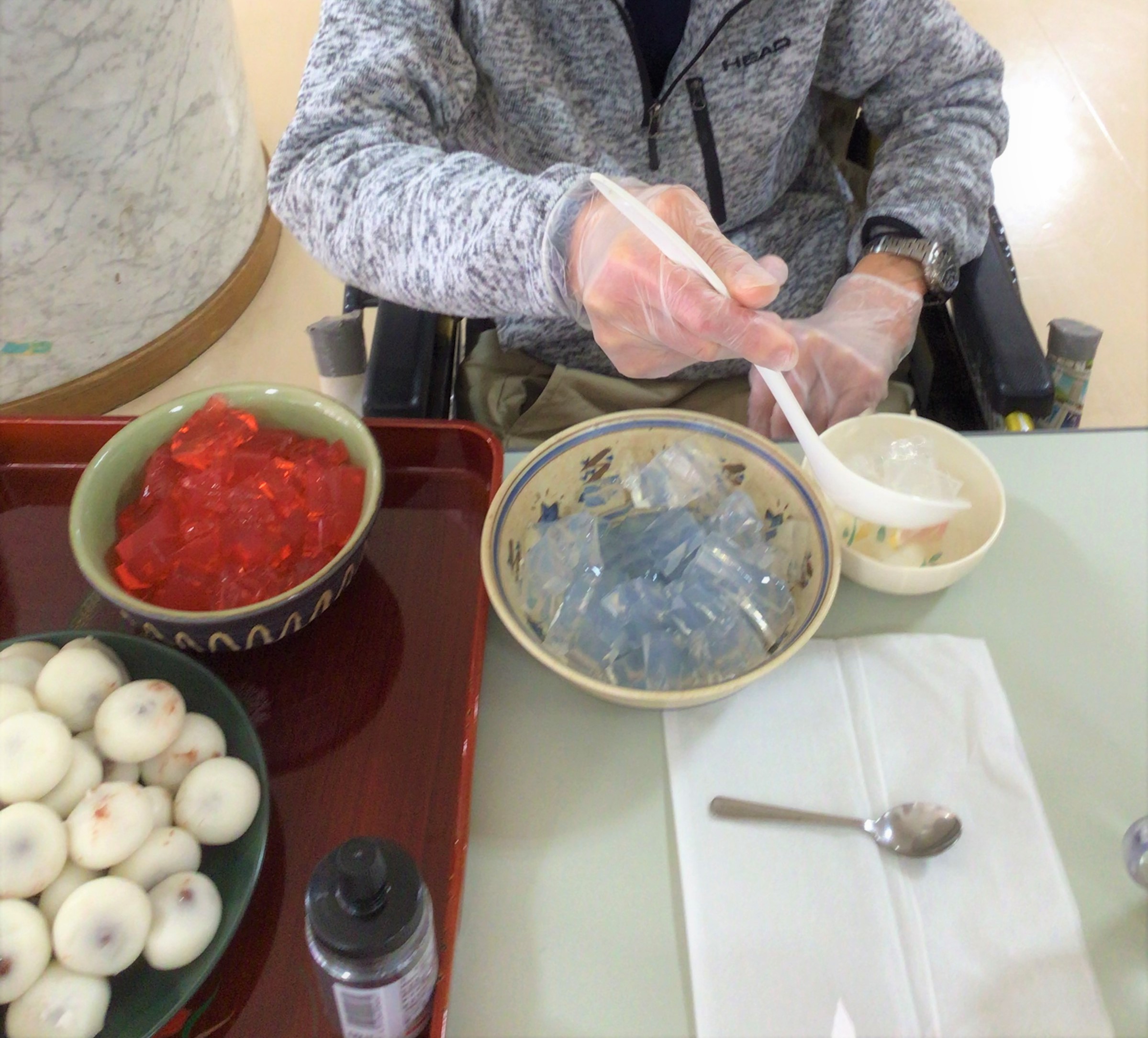 2色の寒天を慎重に切っていきます。
